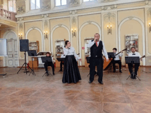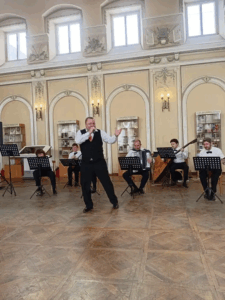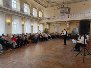 Это воскресное общение было выше всех похвал! Когда народ собирается в Большом зале любимой горожанами библиотеки, то на предстоящее мероприятие влияют многие факторы. Само величественное здание бывшего Офицерского Собрания, и эта массивная, можно сказать, антикварная дверь, и роскошный лестничный пролёт, по которому идёшь в предвкушении чудес, и огромное старинное зеркало, вглядываясь в которое, ты словно видишь мгновения истории. И, бесспорно, сам Большой зал, наполненный не только светом из элегантных двухрядных окон, выполненных в стиле классицизма, но и присутствием музыкантов, которые делают последние приготовления, и неуёмной энергией в улыбке лучшего работника культуры Дона Надежды Александровны Каплиной и приветствиях всех, собирающихся поклонников, кто спешит поприветствовать любимца горожан. Всё это вместе взятое и есть обрамление чувства восторга от предстоящей встречи с прекрасным.