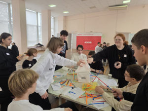 Участники с первых минут активно включились в работу, разделившись на команды. Первым испытанием стала разработка архитектурного проекта дома. Однако главной целью было не просто создание макета, а понимание механизмов командного взаимодействия: ребята учились распознавать и распределять роли — организатора, генератора идей, исполнителя или критика — и находить среди них свою. Настолько увлекшись процессом, участники единогласно отказались от перерыва и сразу перешли к следующим этапам. На втором этапе школьники анализировали профессии и ключевые компетенции, а на третьем — соотносили конкретные действия с профессиональными сферами, определяя собственные ценности и приоритеты.