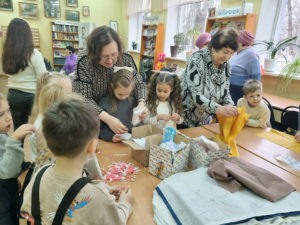 Члены клуба «СОЮЗ-НовоХод» также являются волонтерами, активно помогающими нашим ребятам на передовой. Руководитель клуба Олейник Ольга Николаевна рассказала ребятам о том, как они вяжут носки, манишки и варежки, собирают гуманитарную помощь, а так же в стенах библиотеки им. А.П. Чехова делают заготовки для плетения маскировочных сетей и для «сухого душа».