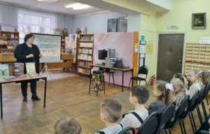 Но прежде участников встречи с книгой «Похождения жука-носорога» познакомила библиотекарь отдела детской литературы Догодина Наталья Геннадьевна. Помимо рассказа об авторе сказки, библиотекарь познакомила гостей с другими книгами как художественными, так и с научно-популярной литературой, раскрывающей историю Великой Отечественной войны.