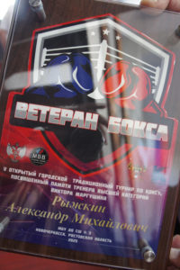 Памятные награды вручены ветеранам бокса: Владимиру Николаевичу Викулову – личному тренеру Виктора Маргушина, Александру Васильевичу Маргушину и руководителю спортшколы №3 Александру Михайловичу Рыжкину.